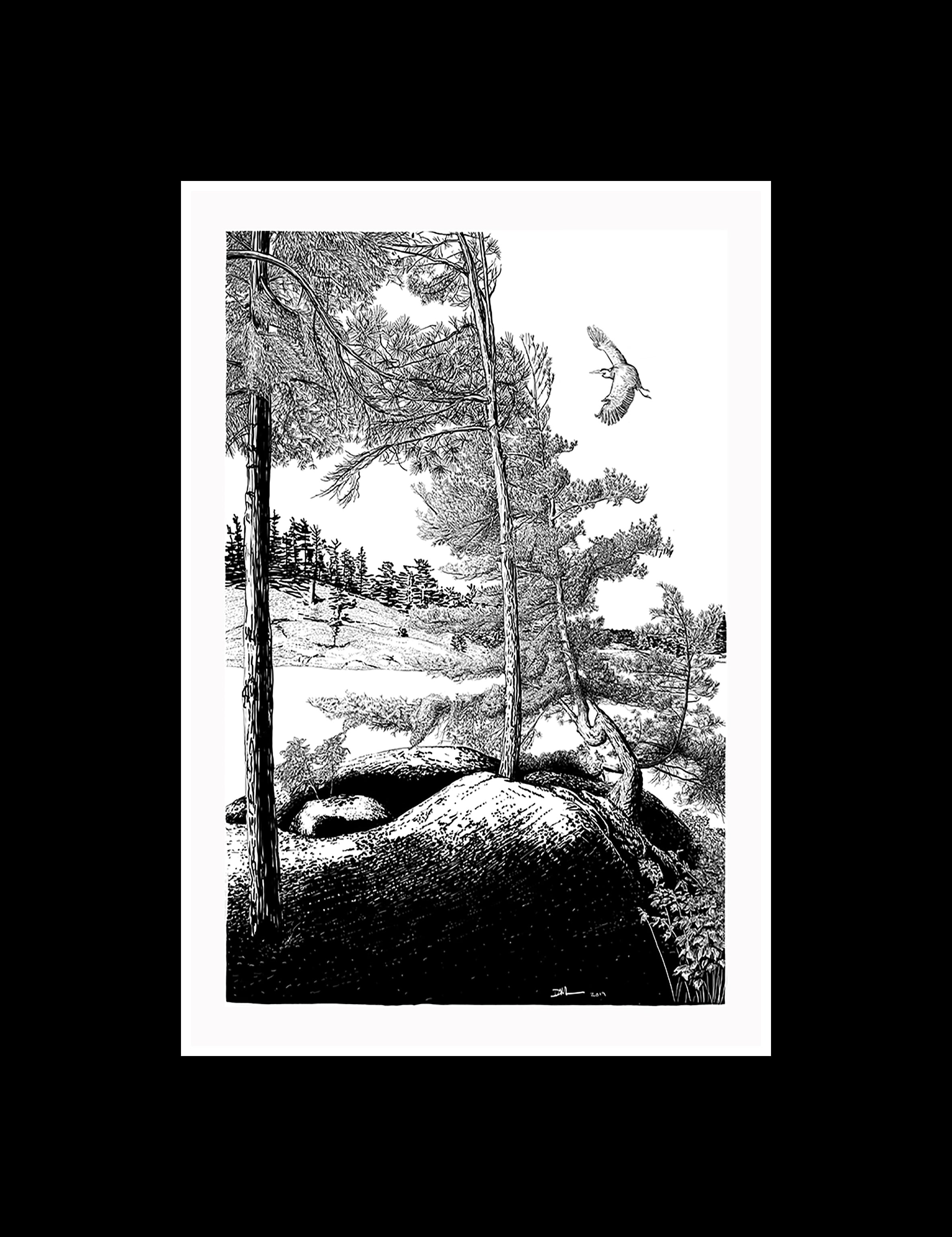 Georgian Bay, named after King George IV, lies on the north shore of Lake Huron, one of Canada’s Great Lakes. With rocks worn by glaciers to resemble waves and evergreens twisted by the harsh climate, this pristine landscape has inspired artists for over a century. Now a resident of Liverpool, David Montagnes was born in Canada, where he worked for a time as a scientific illustrator. For the past 25 years he has been an ecologist at the University of Liverpool.